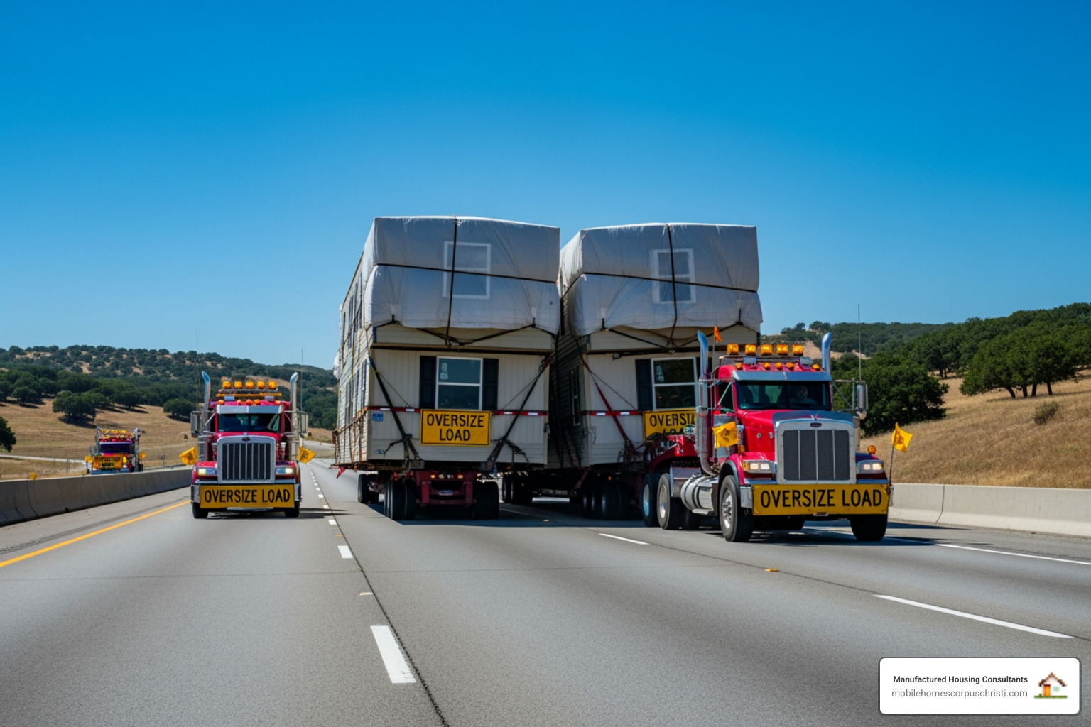 - Escort Vehicles: By law, oversize loads must be accompanied by pilot cars. These vehicles travel in front of and behind your home to ensure safety. Fees typically run $1.50 to $3.50 per mile.
